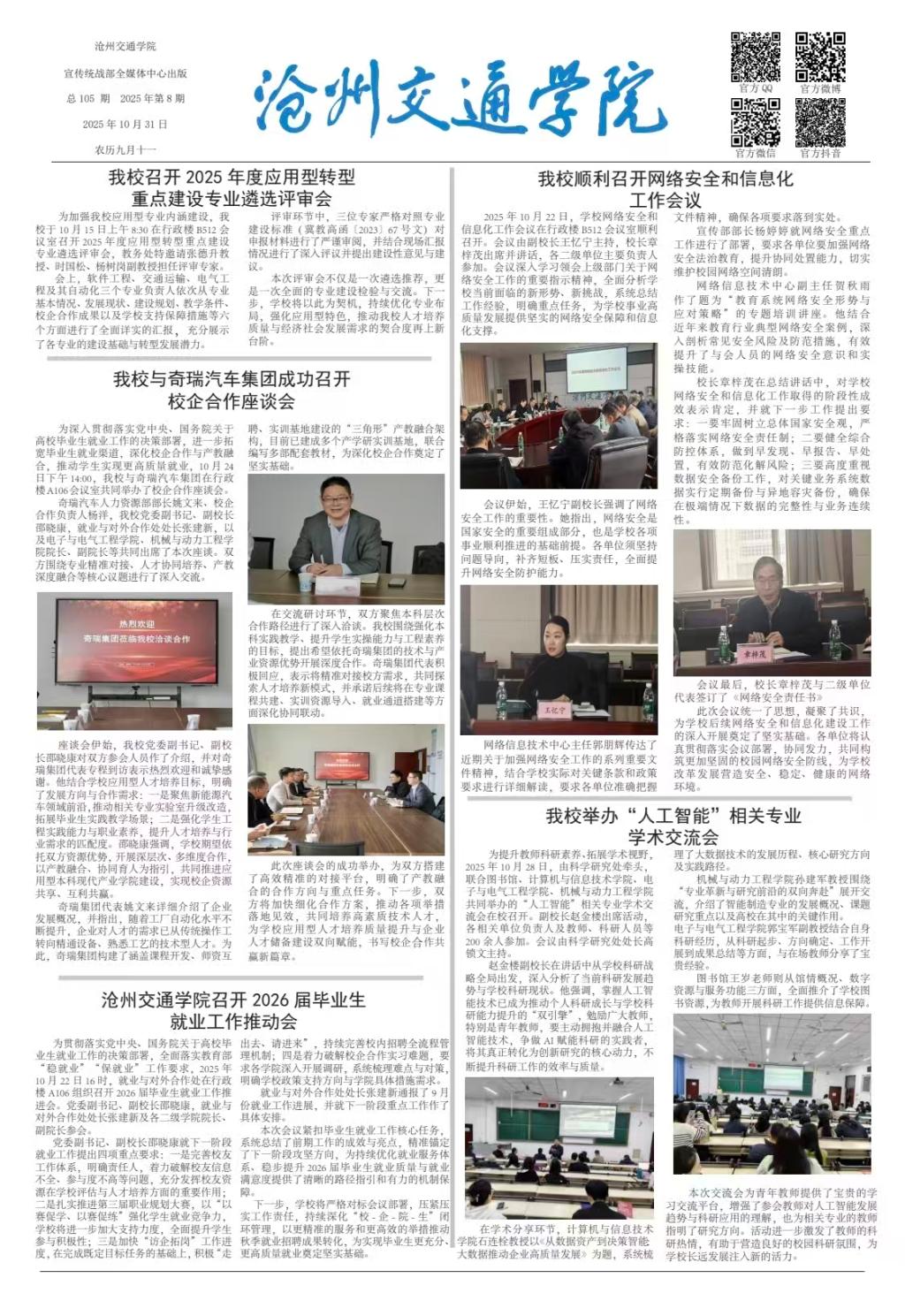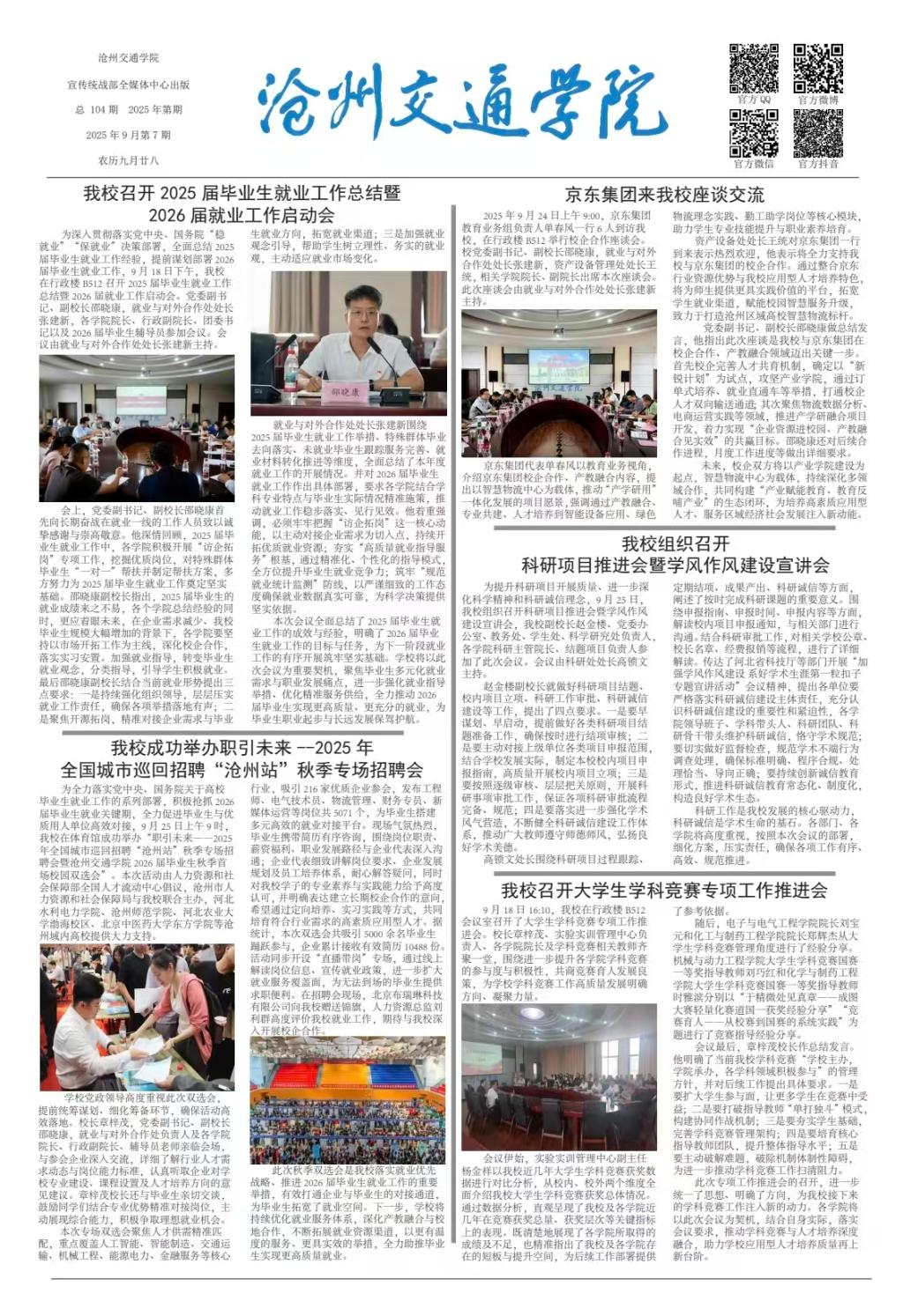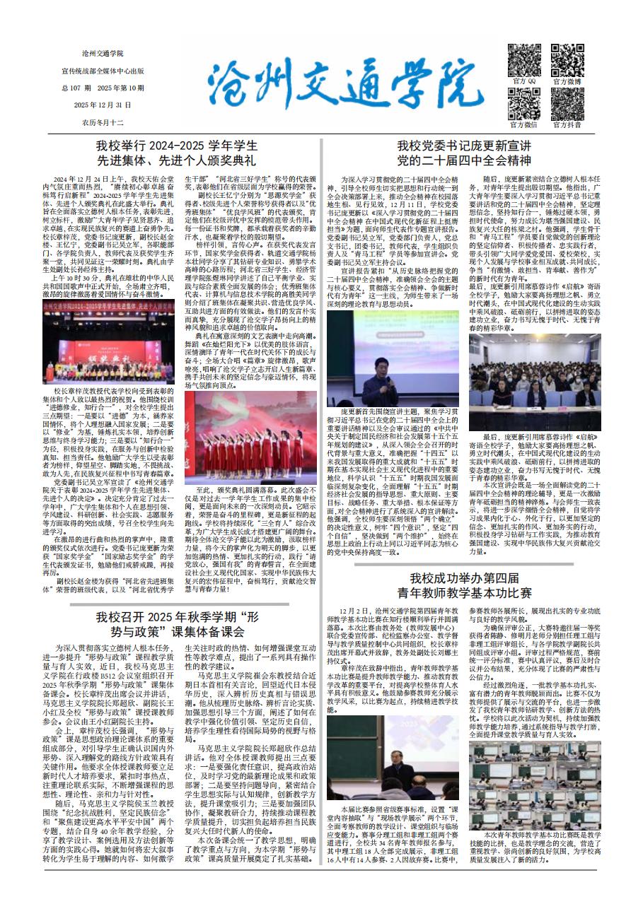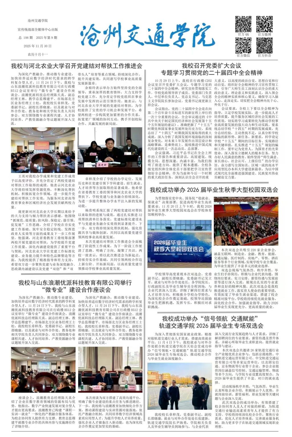 Copyright©2024 沧州交通学院 | 党委宣传部(统战部、工会、新闻中心) 地址:河北省黄骅市学院路2009号 邮编:061199 电话:+86-0317-8889610