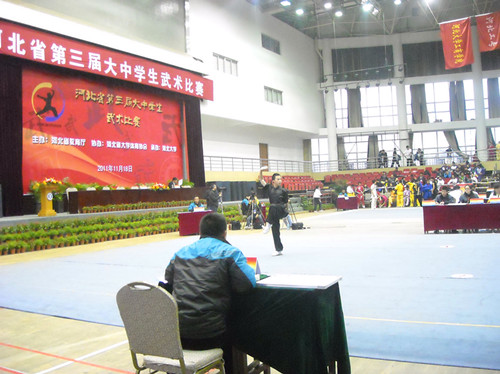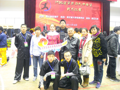2011年11月18日至19日,由河北省教育厅主办,河北省大学体育协会协办,河北大学承办的“河北省第三届大中学生武术比赛”在河北大学多功能馆举行。我院五名队员在体育教研组老师李朝来、于洋,学生处老师任一帆的带领下参加比赛,其中徐冬辉获得自选刀术第三名,自选拳术第四名,自选棍术第五名,景俊获得自选棍术第四名,王宇飞获得传统拳一类第五名,此外,徐冬辉获得体育道德风尚奖运动员。