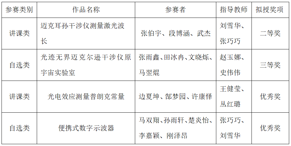 我校学子在第十一届全国大学生物理实验竞赛(创新)中喜获佳绩