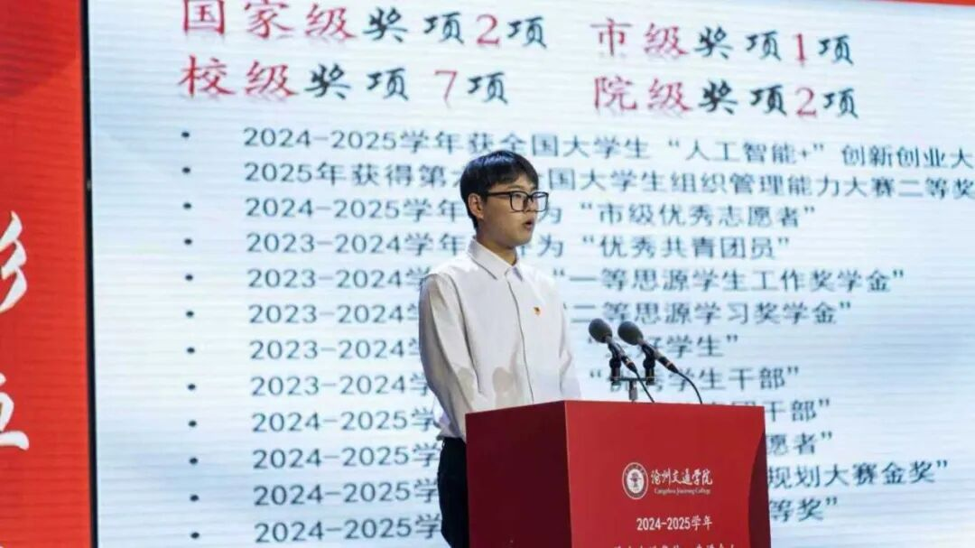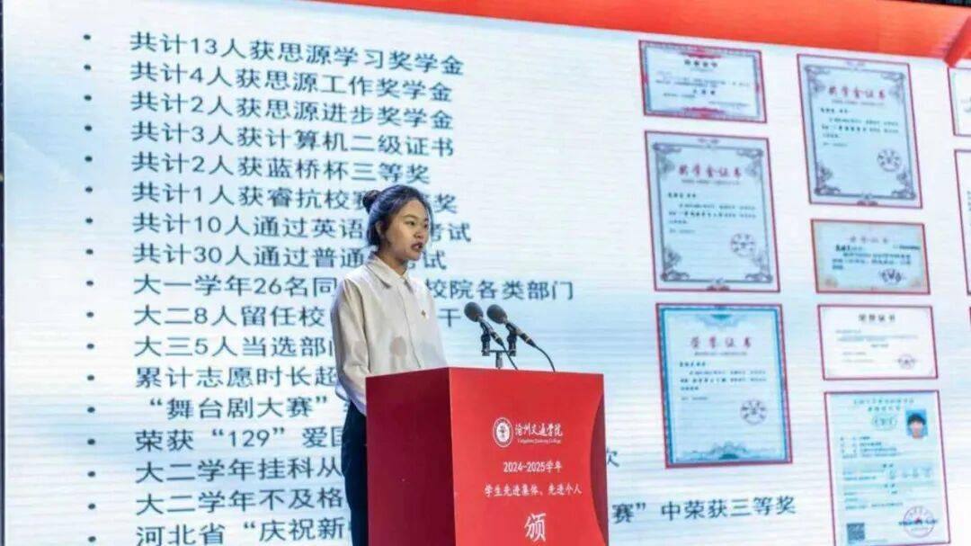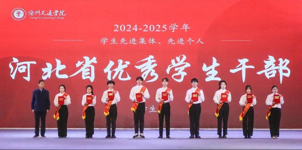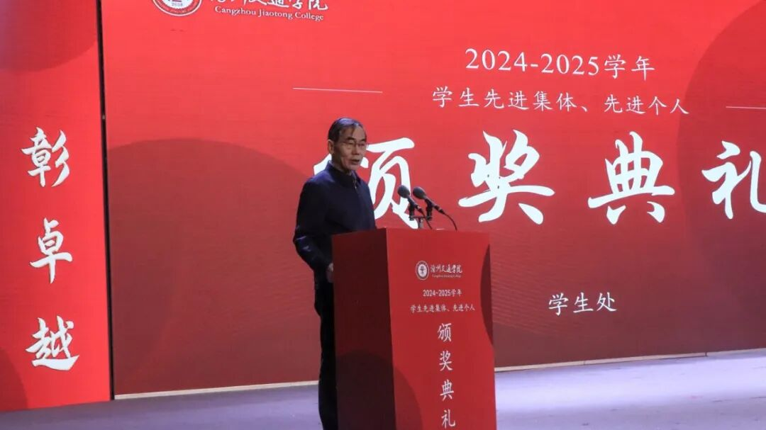 党委副书记吴立军宣读了《沧州交通学院关于表彰2024-2025学年学生先进集体、先进个人的决定》。决定充分肯定了过去一学年中,广大学生集体和个人在思想引领、学风建设、科研创新、社会实践、志愿服务等方面取得的突出成绩,号召全校学生向先进学习。