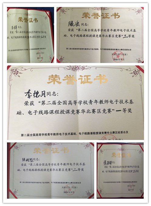 5月20日,我校电子信息与控制工程系5位教师参加了第二届“全国高等学校青年教师电子技术基础、电子线路课程授课竞赛”华北赛区的比赛,并凭借深厚的教学功底和精彩的发挥,在包含清华大学、北京航空航天大学、北京邮电大学、天津大学等30多所高校的参赛教师中脱颖而出,取得佳绩。其中,李德月老师荣获华北赛区一等奖,张树维老师、白锌老师荣获二等奖,滕岳老师、侯甜甜老师荣获三等奖,充分展现了我校电子信息与控制工程系青年教师的风采。