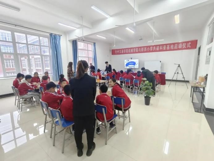 为普及小学生科学文化知识,提高小学生的科技创新意识,让小学生了解更多关于人工智能等科学技术的力量,培养学生的创新能力以及动手能力。我校机械与动力工程学院与黄骅市骅西小学共建科普启动仪式于3月27日下午4点在新实验楼318召开。骅西小学校长王普庆,骅西小学副校长冯翠翠,骅西小学科技辅导员王国通及骅西小学学生,我校机械与动力工程学院行政副院长任一帆,教学副院长代伟业,团委书记王景政,杨树岗老师,孙浩老师和李永越老师参加了本次活动。