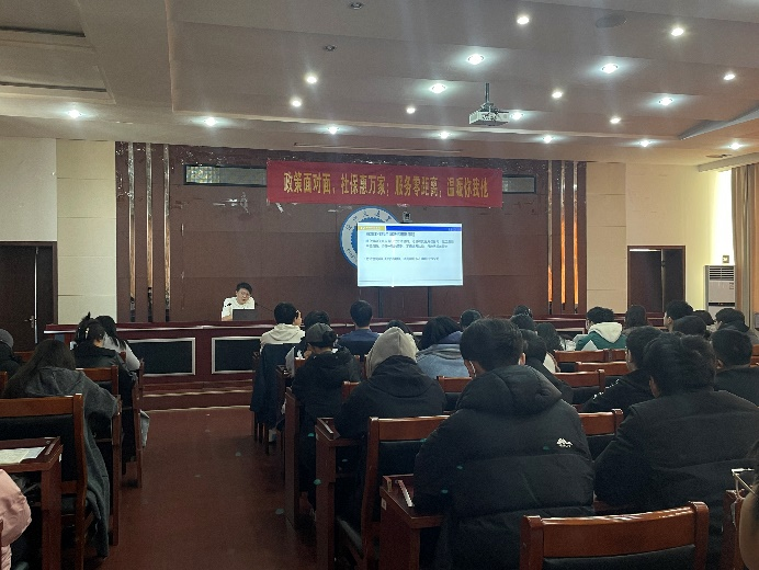 11月21日上午,沧州市人力资源和社会保障局系统建设部部长郭敬蕊、沧州渤海新区黄骅市社会事务局企业保险所所长崔凯带队到我校开展“社保服务进万家”专场宣传活动。我校人事处、学生处相关负责人、教师代表、学生代表参加了宣讲会。